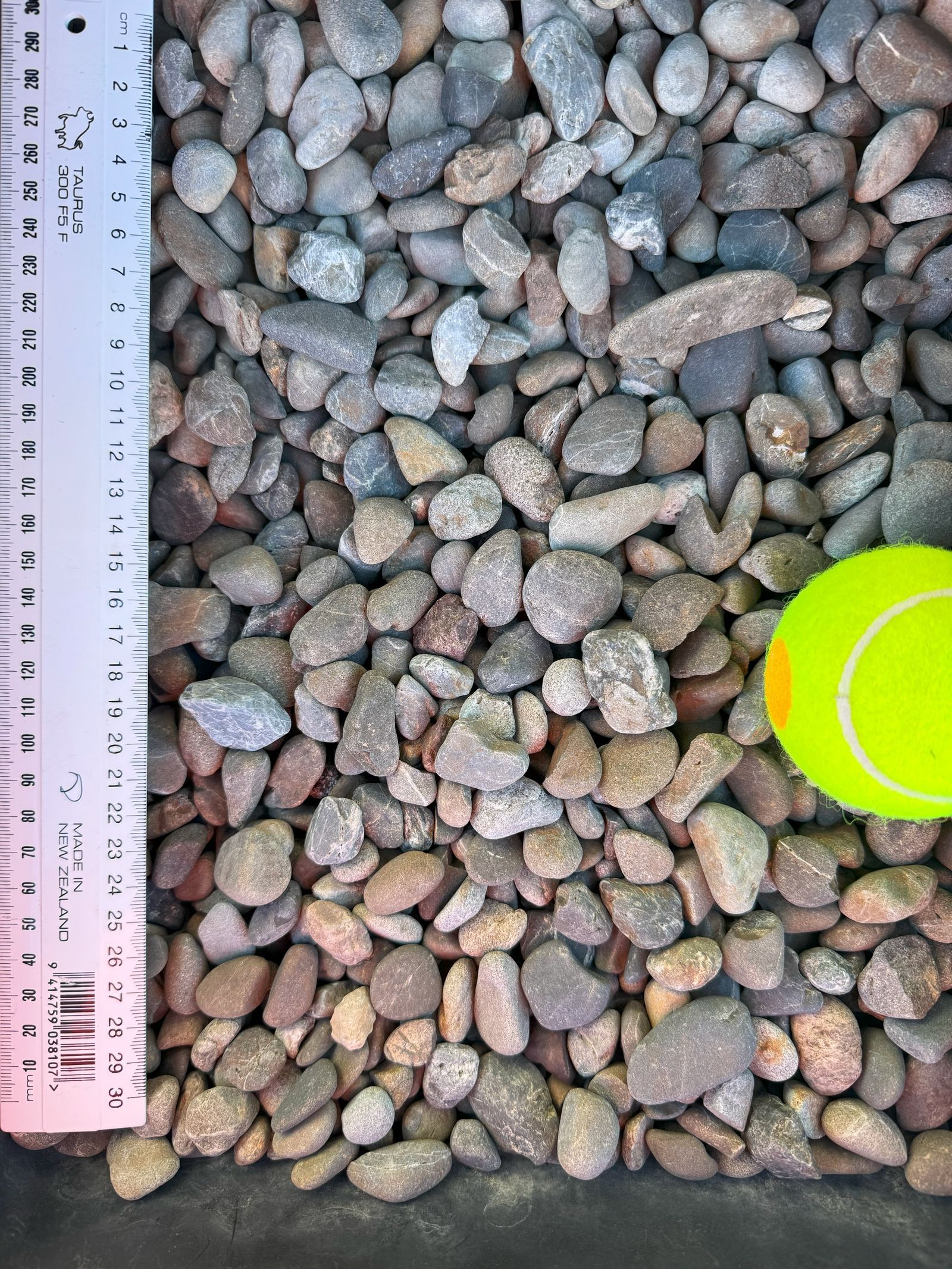 Riverland Stone features a warm, earthy blend of rounded pebbles in shades of brown, cream, and grey. It's an inviting decorative choice for pathways and garden areas, creating a soft, natural aesthetic.